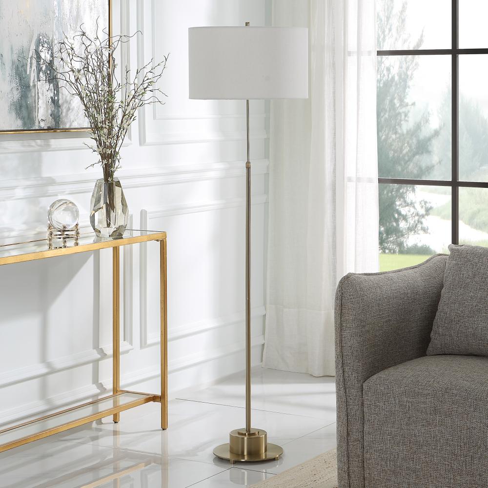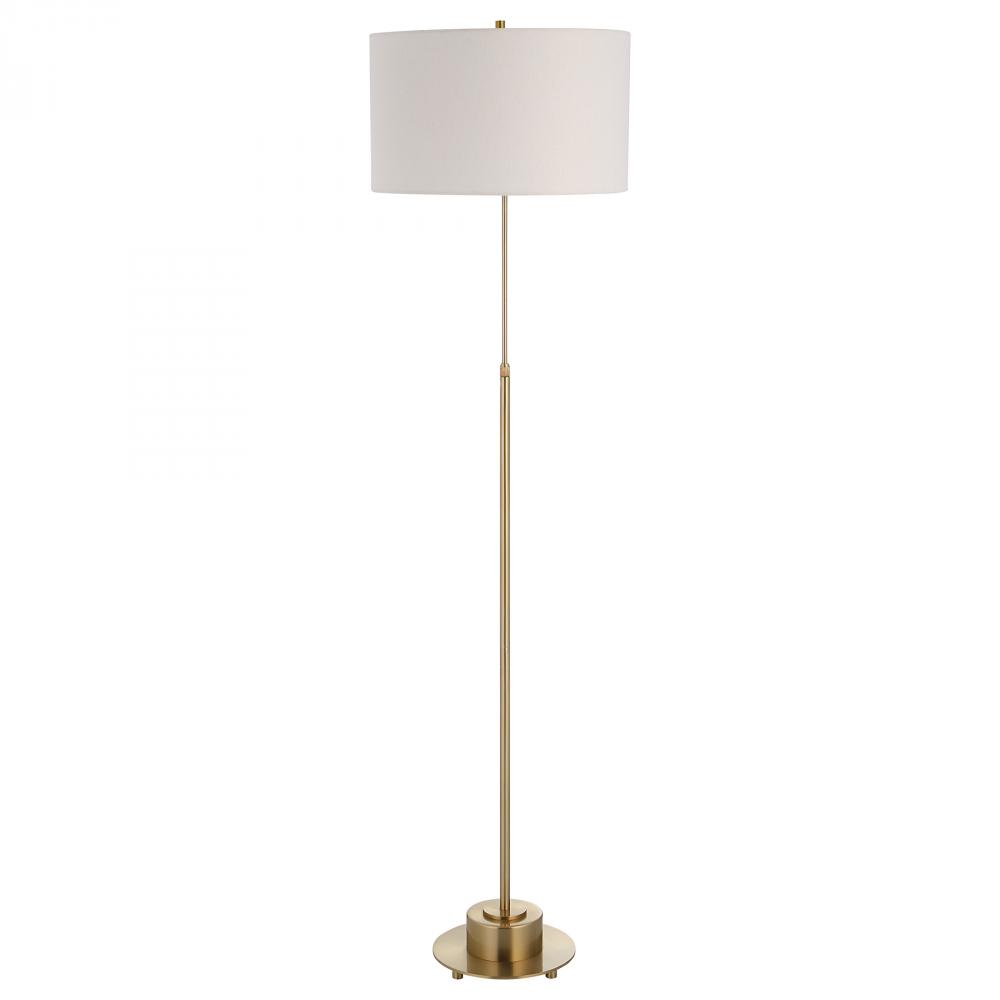 This Versatile Iron Floor Lamp Showcases A Slender Design Featuring An Adjustable Neck and Knurled Tightening Collar, That Allows It to Go From A 53" Tall Reading Lamp to A 70" Tall Floor Lamp, Finished in A Plated Brushed Antique Brass.