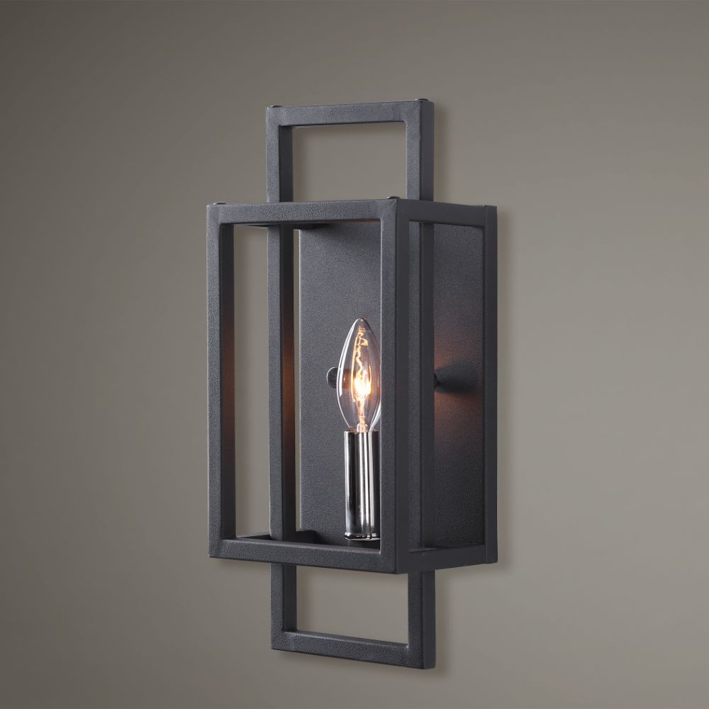 Clean Rectangles In Sanded Black Texture Finish With Polished Nickel Accents Complete This 1 Lt. Wall Sconce. With 1-60 Watt Max, Candelabra Socket.