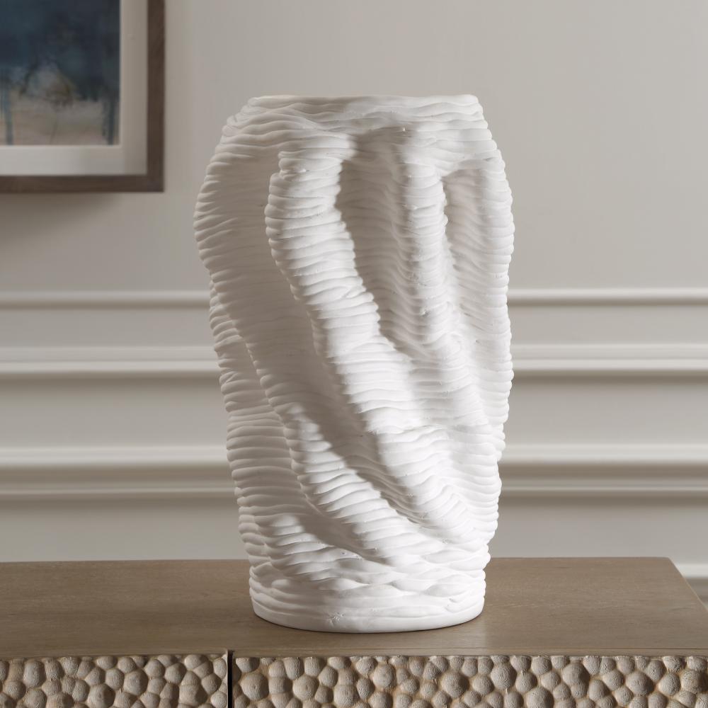 This Unique Silhouette Creates A Modern Look With Its Organic, Free Flowing Shape. Combining Sculpture And Functionality, This Ceramic Vase, Featuring Layers Of Organically Shaped Stacked Rings, Is Finished In A Matte White Glaze. Beautiful As A Standalone Piece Or Add Some Florals For A Pop Of Color. Made For Decorative Purposes Only; Not Intended To Hold Water.