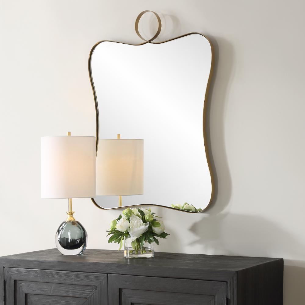 This Vanity Mirror Features A Sophisticated Stainless Steel Frame In A Plated Antique Brass Finish. The Elegantly Curved Silhouette Brings A Modern Twist To A Traditional Shape, Blending Timeless Charm With Contemporary Appeal.