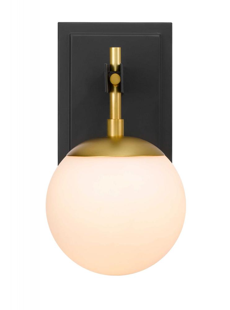 Mid-Century and Post Modern Design Influences. Gorgeous White Recycled Glass Globes. Easy Re-lamping. Two Tone Satin Black with Brass or Polished Nickel with Black Finshes.