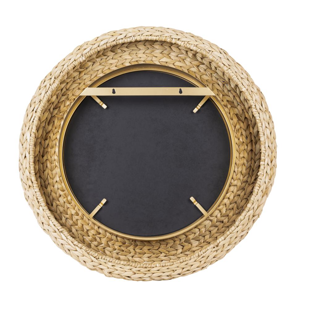 Athena 30-in Round Wall Mirror - French Gold/Natural Seagrass