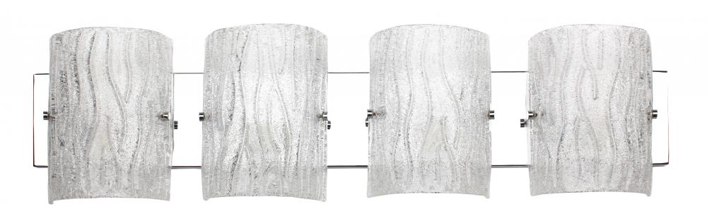 It's back! This popular design from Varaluz's past makes a modern and bright return. Named appropriately for its overall lighting effect, these fixtures marry crystally-cool ice glass, handmade Murano style with clear glass chips fused by heat on the back side, to clean and simple chromed metal work.