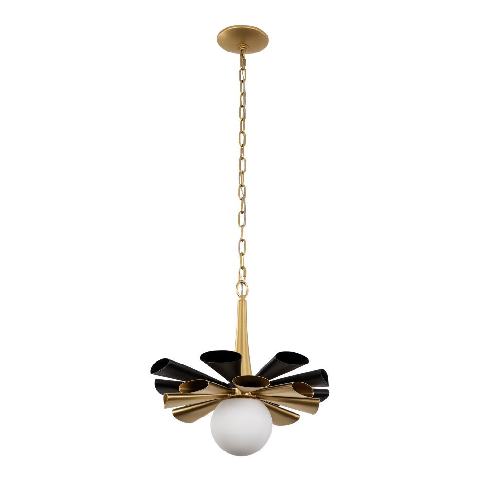 Hand-forged Tapered Oval Tubing. Hand-applied Matte Black and French Gold. Recycled Opal White GLass Globe