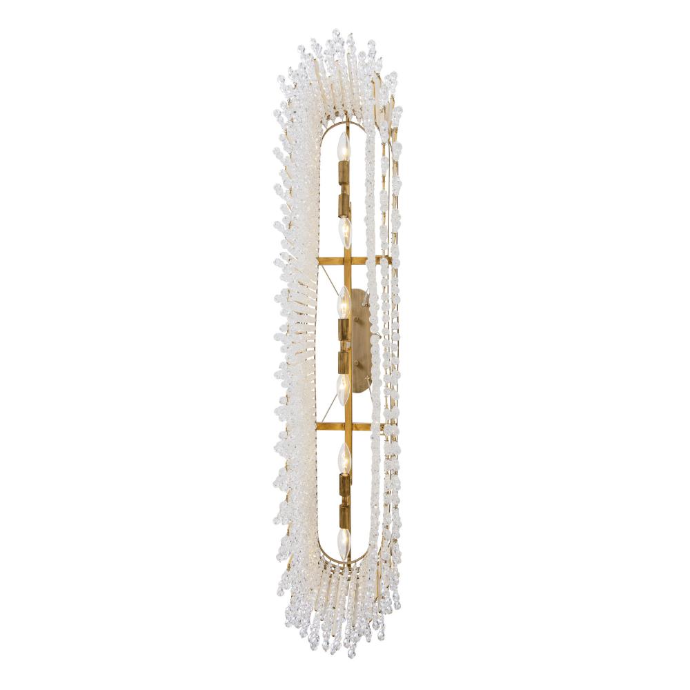 Hand Forged Recycled Steel Finished in Havana Gold. Hand Carved Recycled Wood With Gold Leaf and a Subtle and Soothing White Wash. Premium Optic Faceted Crystal.