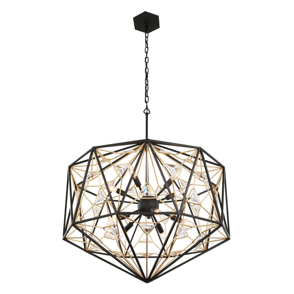 Intricate Geometric Metal Work. Custom Triangular Crystal. Matte Black and French Gold Finish