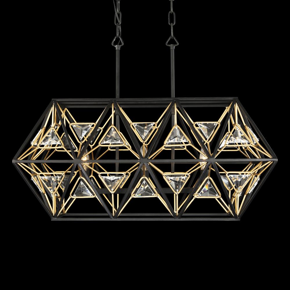Intricate Geometric Metal Work. Custom Triangular Crystal. Matte Black and French Gold Finish