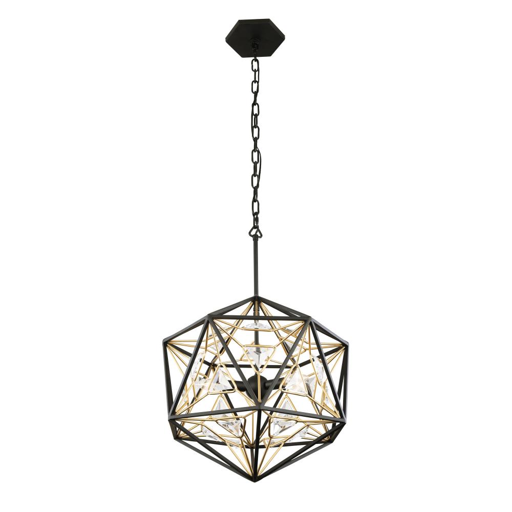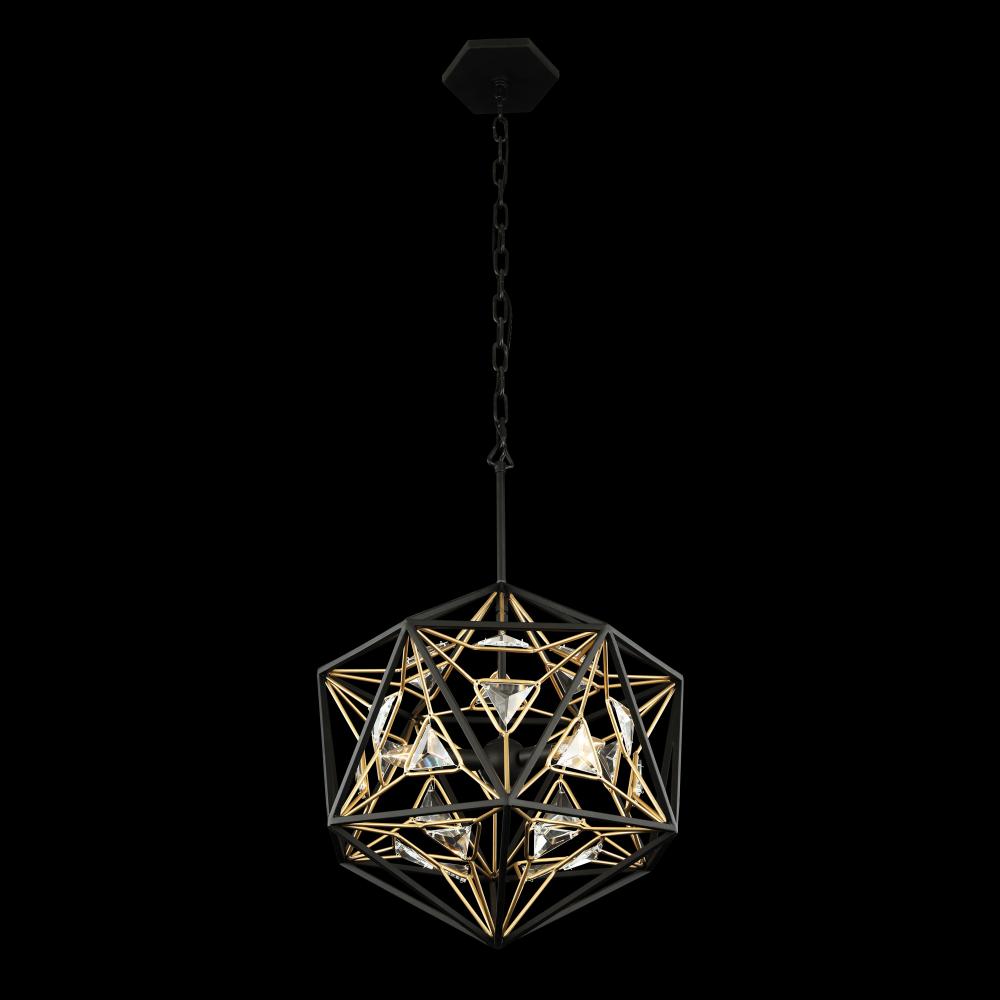 Intricate Geometric Metal Work. Custom Triangular Crystal. Matte Black and French Gold Finish