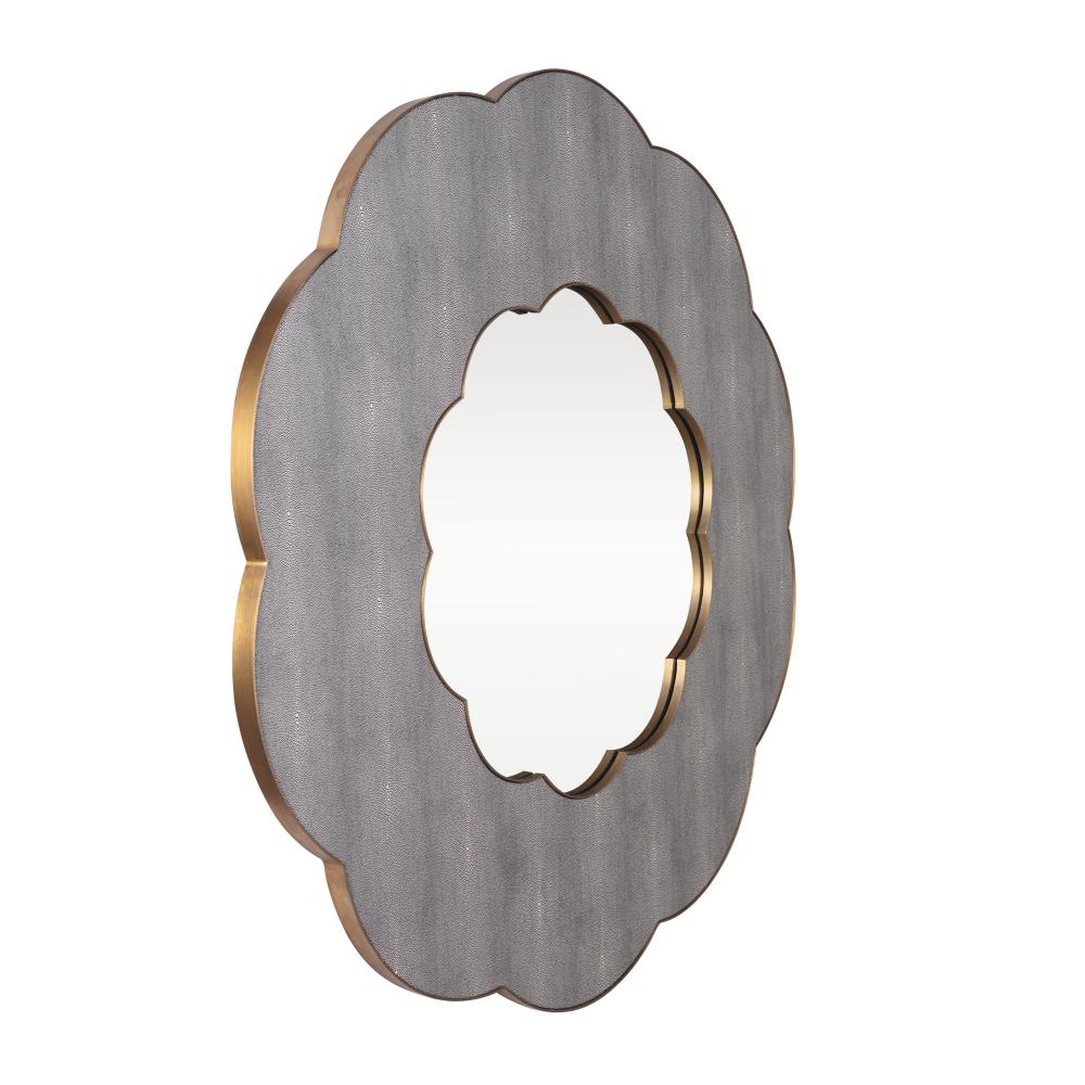 Be thrilled by the allure of the Scallop Decorative Wall Mirror from Tamara Day's collaboration with Varaluz Casa. This mirror commands attention, while its Gray Shagreen finish and Weathered Brass accents infuse any space with statement-making elegance and charm.