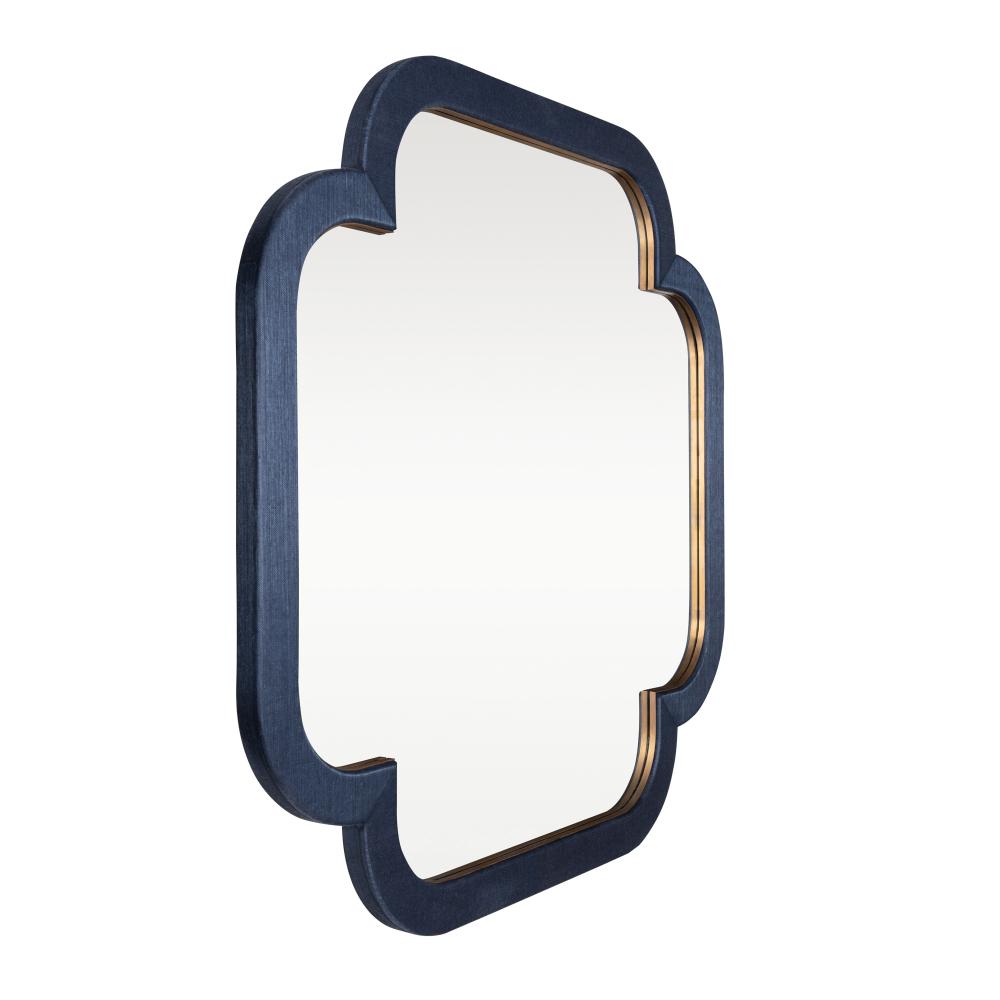 Swiss 50x50 Wall Mirror - Dark Blue Grasscloth/Weathered Brass