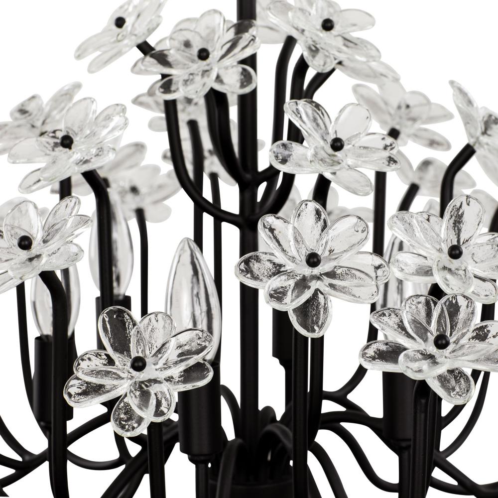 When you first see it aglow with its fine intricacies, it may not show, but the Wildflower collection started its path to existence thanks to Mary V. Walcott's Oconee-Bells discovered in the Smithsonian Libraries and Archives Special Collections. Taking center stage is a touch of Danish modern on top of midcentury. Wildflower combines delicate, handmade ice glass flower petals, with equally delicate wispy hand-forged and recycled steel tubing and metal work. Available in gold or black.