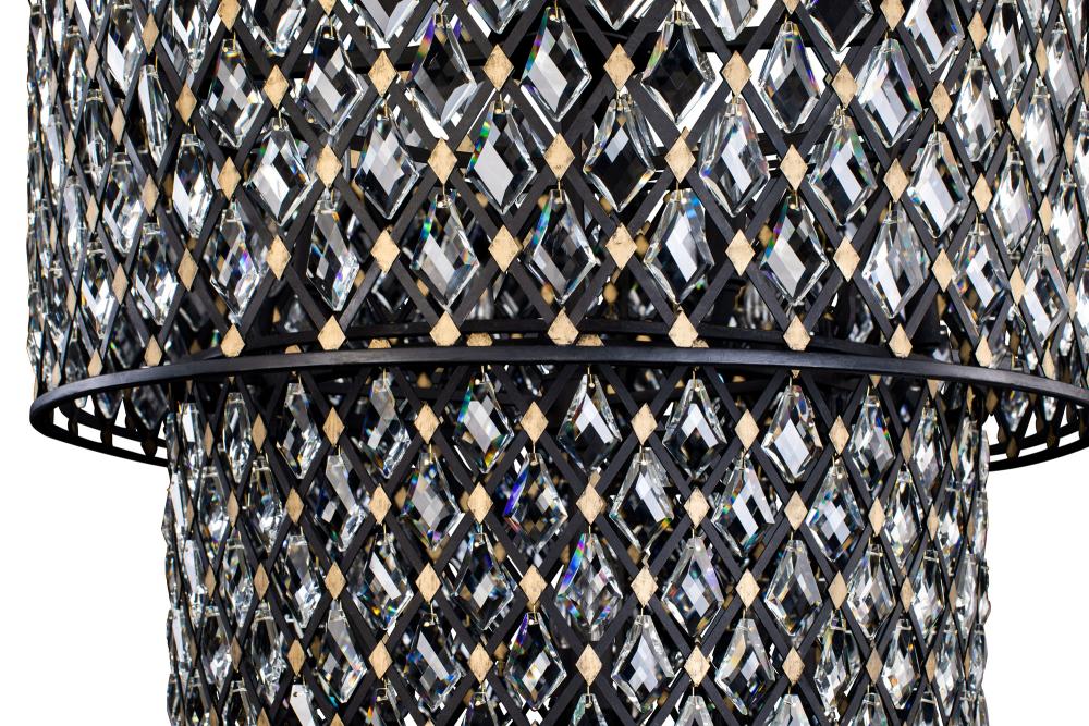Hand Forged Recycled Steel. Double Harlequin Metal Frame. Premium Kite Shaped Optic Crystal Pendalogues.