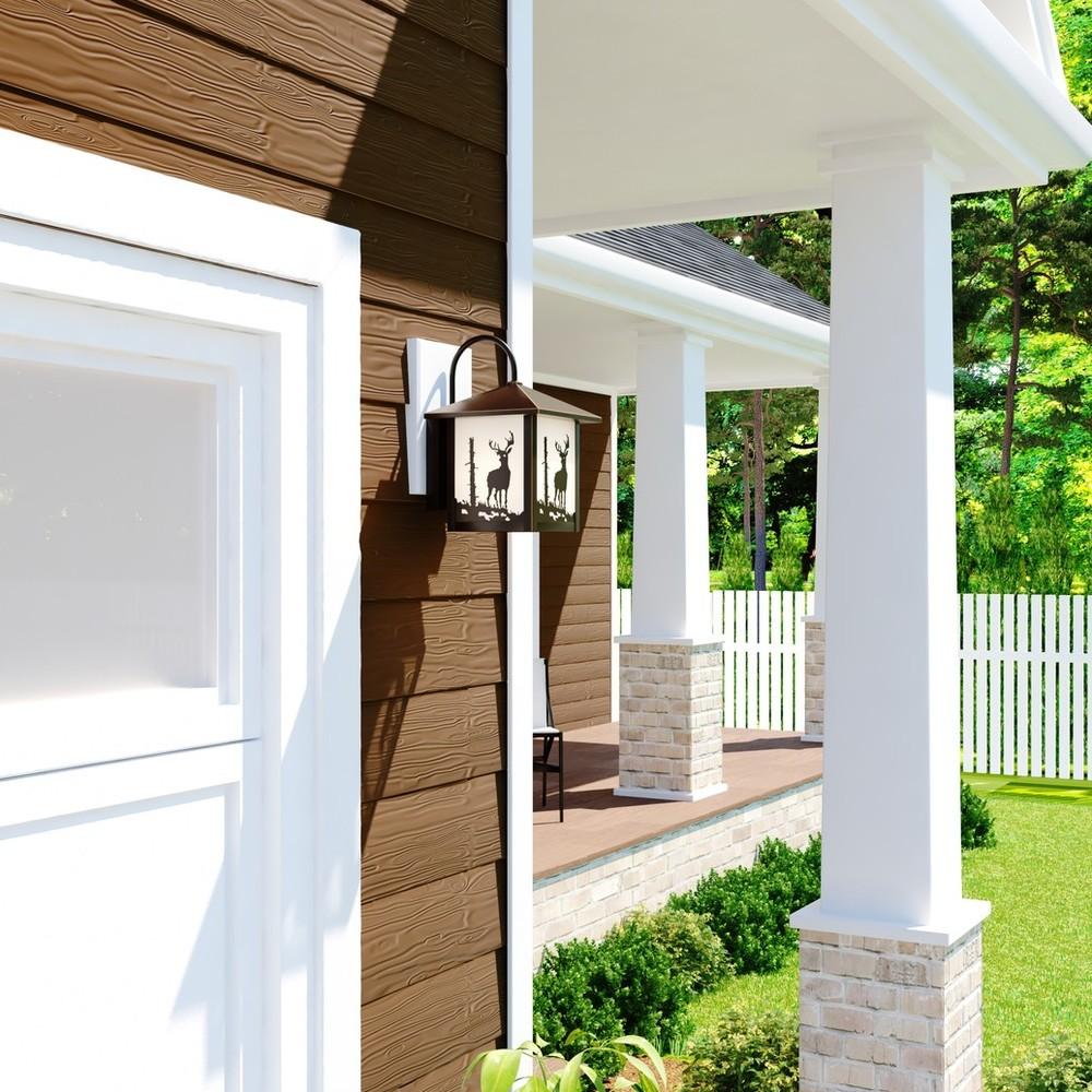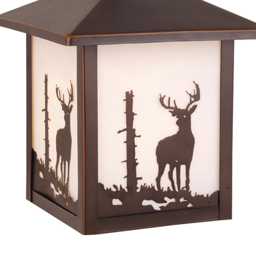 Evoking the spirit of the wilderness, this rustic themed light is clad in a burnished bronze finish and features silhouetted deer imagery atop glowing white tiffany style glass. The classic form of this lamp makes it a great choice for a vacation lodge, cabin or a suburban home - it will complement a variety of home styles: anywhere you want to bring an element of nature. Medium screw base lamping provides maximum light output, and flexibility in bulb choice.