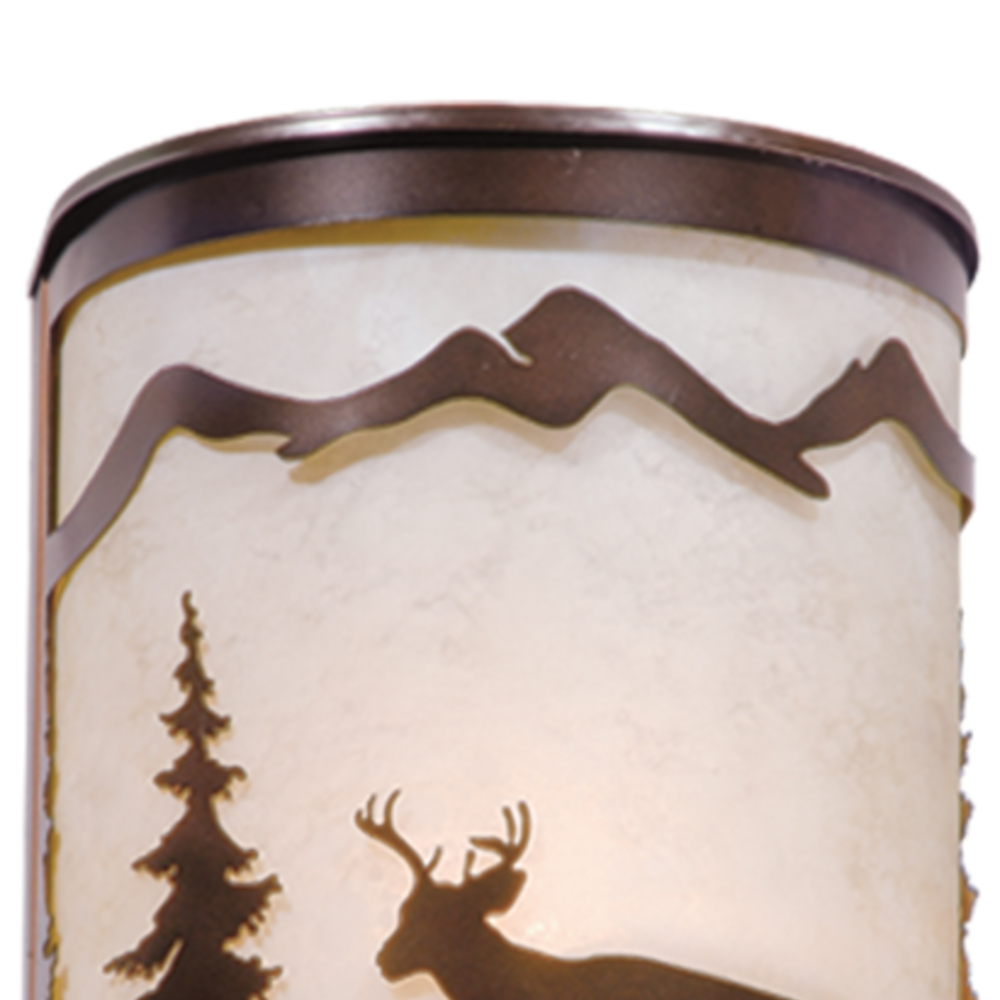 Evoking the spirit of the wilderness, this rustic themed light is clad in a burnished bronze finish and features silhouetted deer imagery atop glowing white tiffany style glass. The classic form of this lamp makes it a great choice for a vacation lodge, cabin or a suburban home - it will complement a variety of home styles: anywhere you want to bring an element of nature. Medium screw base lamping provides maximum light output, and flexibility in bulb choice. This versatile light is outdoor damp rated and can be used indoors as well as outdoors. Mount these lights on your porch, hallway, or entryway and experience this stylish look for yourself.