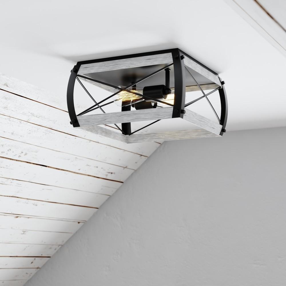 The open and airy feel of the Montclare collection is a real show-stopper! The geometric forms are solidly framed then accented with delicately spun metal wire adding a touch of visual movement. The unique color combination of textured black and natural white ash creates the perfect farmhouse appeal. This flush mount ceiling light is ideal for any bedroom, hallway or other living space.