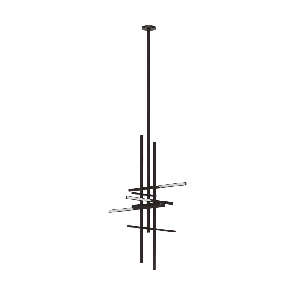 The Cityscape Pendant by Sean Lavin is an expertly crafted frame with a brilliant geometric design. Multiple rods branch off from the center, creating intriguing intersections. Shades can be rotated to create a unique lighting experience for your space. Integrated LED lamping provides a warm, decorative ambiance for a harmonious interplay of bold form and sensible function. This piece will provide your space with warm ambient lighting.