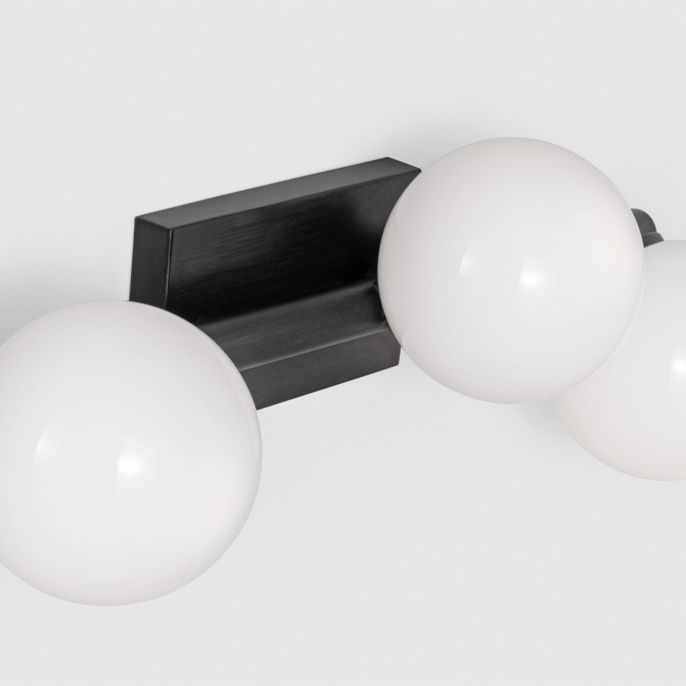 The Altair collection combines simple metal structures with elegant milk glass globes that draw inspiration from delicate water droplets. Elegant with a buoyant sensibility, the minimalist structures will create a refined statement.