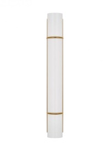The Amelie Integrated LED vanity series by Chapman & Myers is a simplified cylindrical linear bath light with two metal rings inspired by a vintage cuff bracelet. Each sconce has a cylindrical glass shade accented by two metal rings on either end of the sconce and a metal back plate. Amelie is illuminated with custom-led panels to provide an even glow through the white glass shades. Available in three sizes and three finish options. Dimmable Integrated LED lamping with Damp location rating.