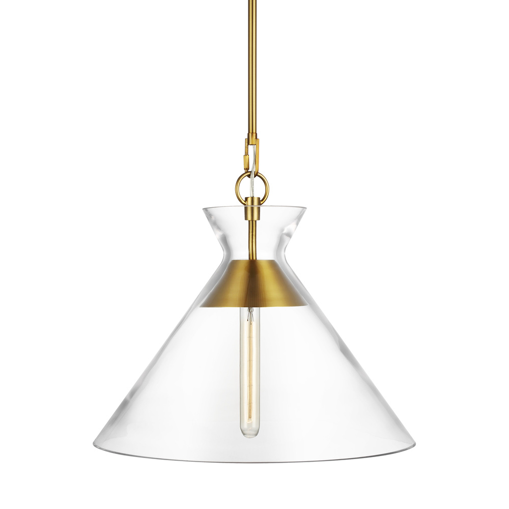 The Atlantic series from Chapman & Myers for Visual Comfort Studio Collection features globe and conical Clear Glass pendants paired with rich Burnished Brass and pure Polished Nickel hardware; these work well singularly or in multiples to elevate any room. The lamping suspends from the center, and appears floating within the Clear Glass shade. Coordinating table lamps feature white linen shades and lend a bright, cozy ambiance to any space.