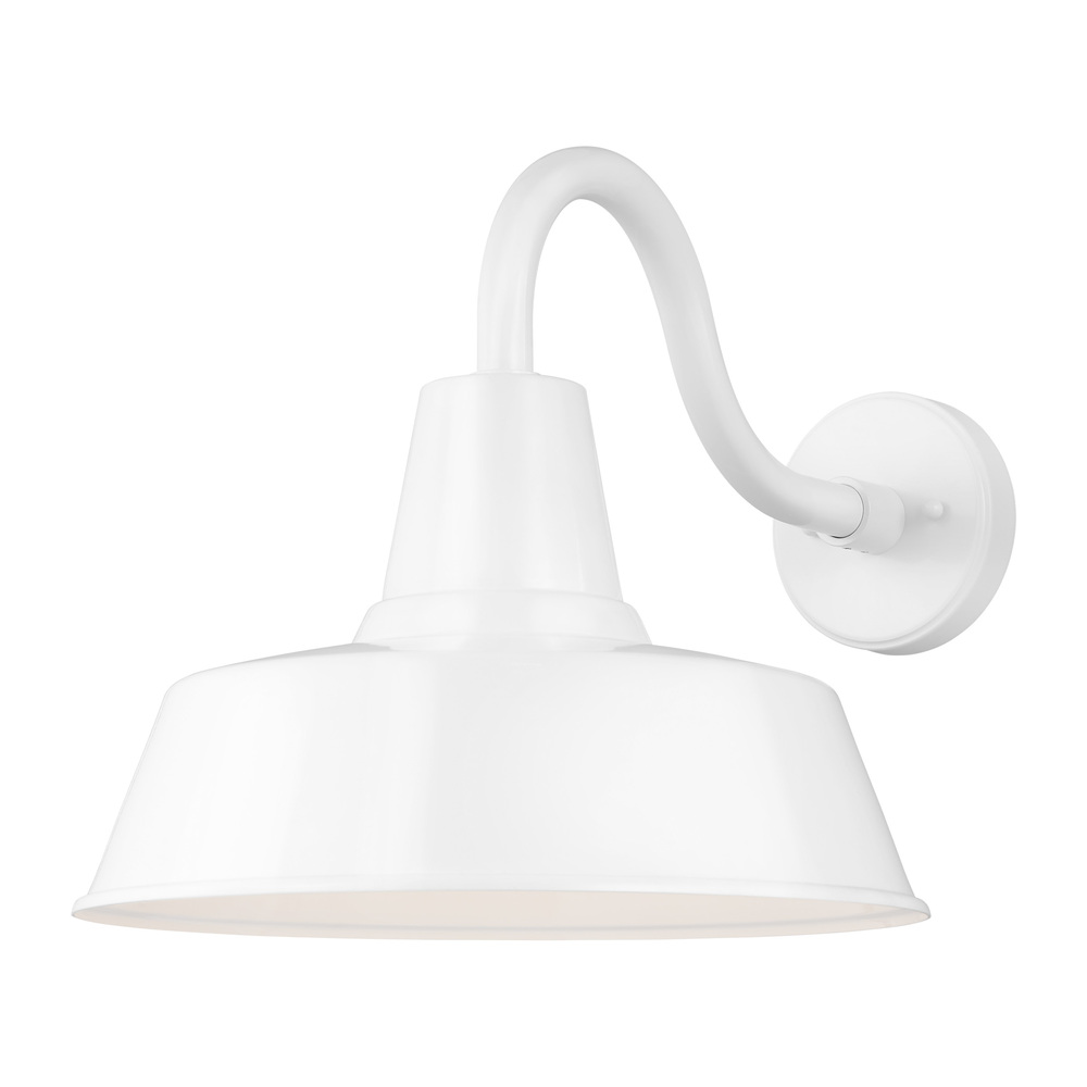 The Barn Light one light outdoor wall fixture in white is an ENERGY STARĀ® qualified lighting fixture that uses LED bulbs to save you both time and money. The classic Barn Lights are hand crafted in aluminum and coated in a Galvanized or Blacksmith finish. Ideal for large or heavily trafficked outdoor areas that need plenty of downward directed light. The oversized Barn Lights make great accents to any commercial lighting plan or residential garage entry, shed, or patio. To customize your look, a 6" extender is included with every fixture. Also available as Dark Sky with four size options to choose from.