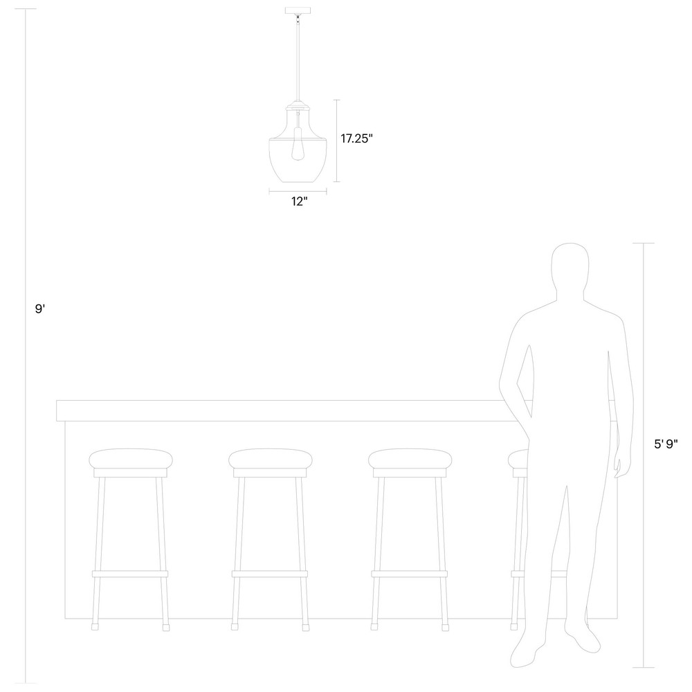 The Baylor one light indoor pendant in oil rubbed bronze is the perfect way to achieve your desired fashion or functional needs in your home. Taking inspiration from the generous vessel and slender neck of a vintage glass jug, the pendants of the Baylor Collection make their presence known in an understated way, with an eye-catching yet simple silhouette and a classic Clear Seeded glass shade. Baylor pendants are available in two hardware finish options, either Satin Nickel or Oil Rubbed Bronze. Both fixtures have a Clear Seeded glass shade. Exposed lamping (sold separately) gives a slightly rustic, industrial feel. Baylor pendants measure 12" at their widest point, and are 17" high.