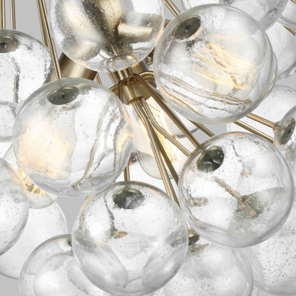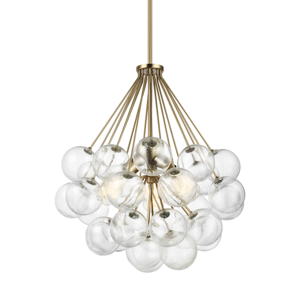 The Bronzeville three light indoor pendant in satin brass supplies ample lighting for your daily needs, while adding a layer of today's style to your home's décor. Bronzeville brings a daring, upscale element of mid-century modern design to any space. Hand blown, Seeded Glass globes encircle warm, glowing, filament lamps, diffusing the light to create a serene ambiance of light and shadow. Available in two finishes.