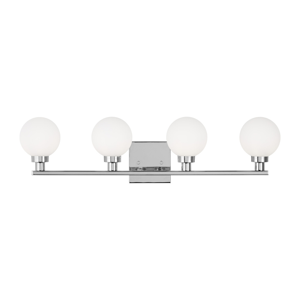 The Clybourn four light vanity fixture in Chrome is an industrial yet minimalist design, making this fixture perfect for an eclectic living room or over a modern dining room table. Milk Glass gives the Clybourn series a more current look.