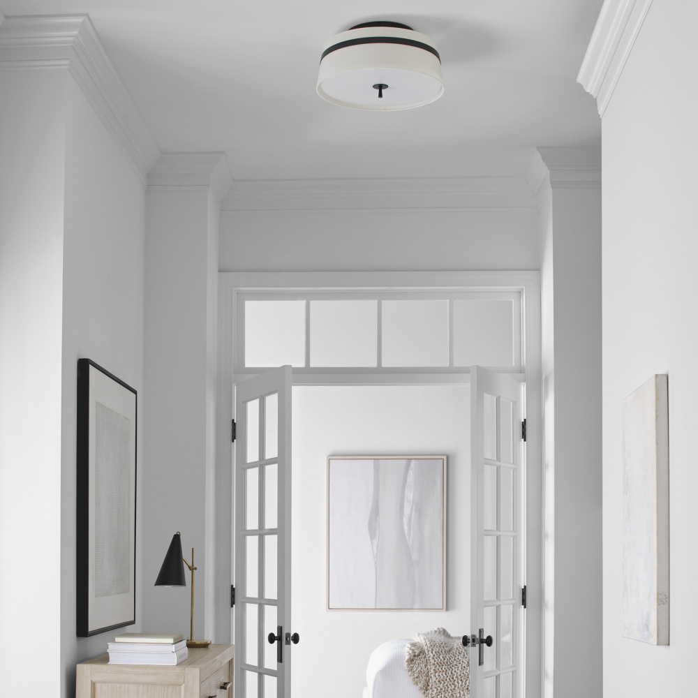 The simple, transitional Cordtlandt pendant and flush mount series features a perfectly proportioned conical hanging shade with an optional metal band cinching it at the waist.