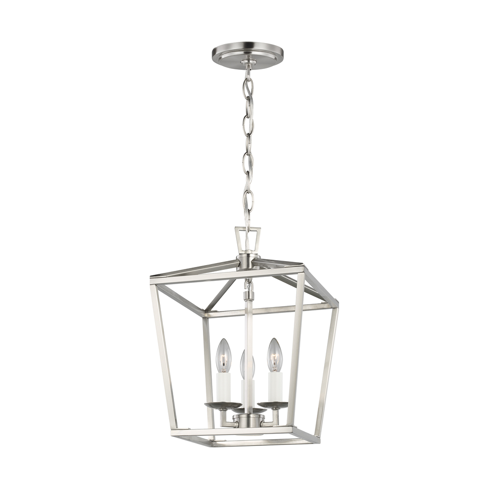 The Dianna three-light mini lantern by Visual Comfort Studio is offered in the Midnight Black, Satin Brass or Brushed Nickel finish. The dark and transitional open frame encompass generously proportioned candelabra style bulbs. This updated silhouette brings a modern element to your cozy ambient lighting design.