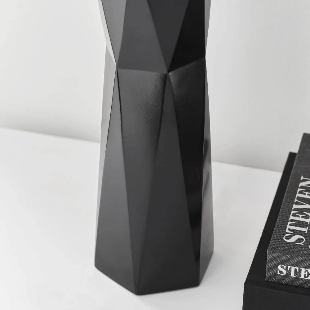 Fernwood is a multifaceted column table lamp in rich tones that gives visual dimension to a mid-century look, adding a refined modern note to your space. It features a square base with a gleaming gold finish crafted from resin, and it showcases a textured design for an Art Deco appeal. Fernwood is capped with a white line shade dispersing light from a medium-base bulb (included).