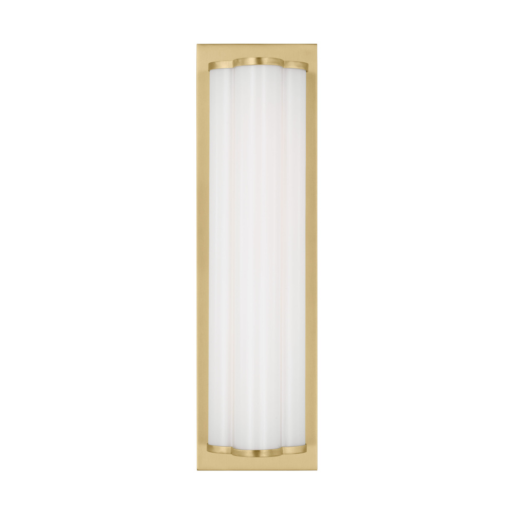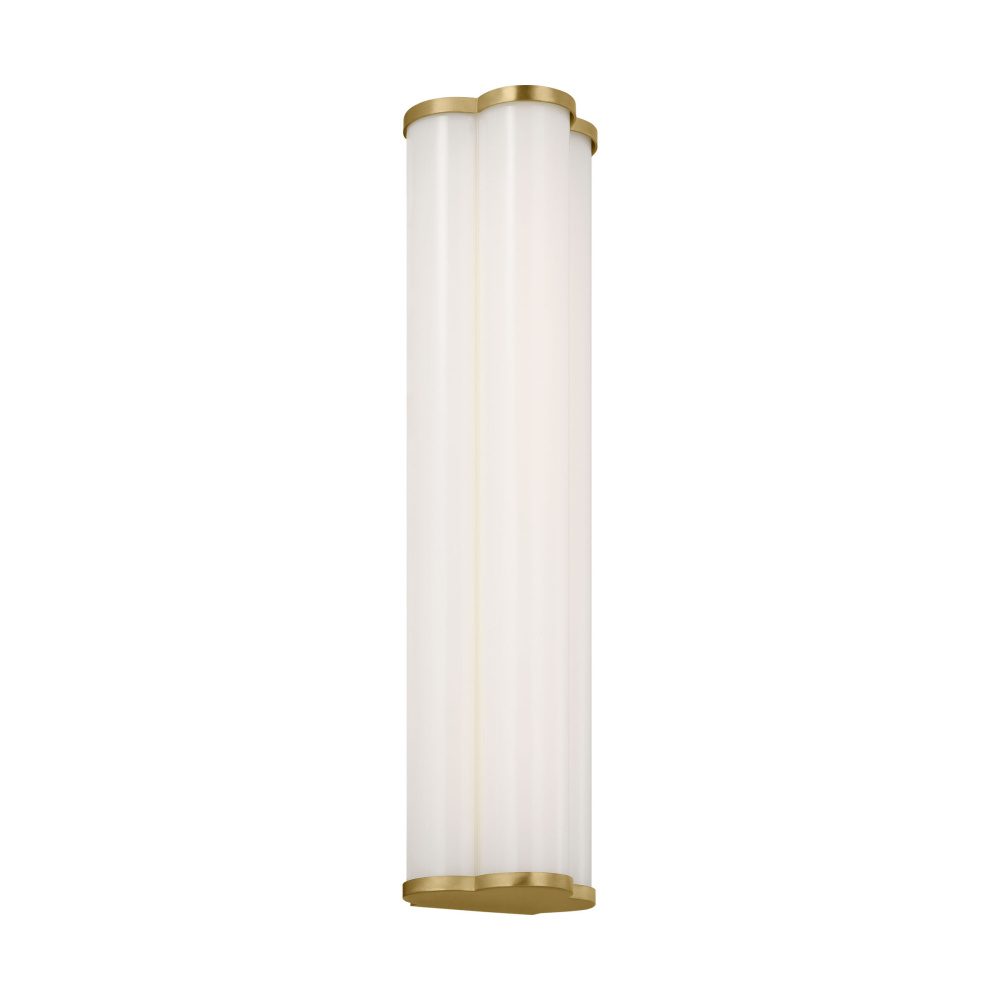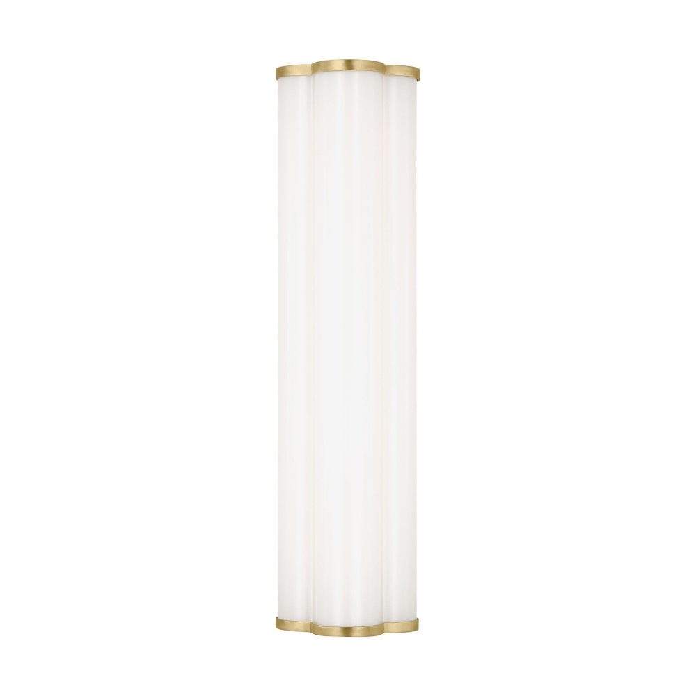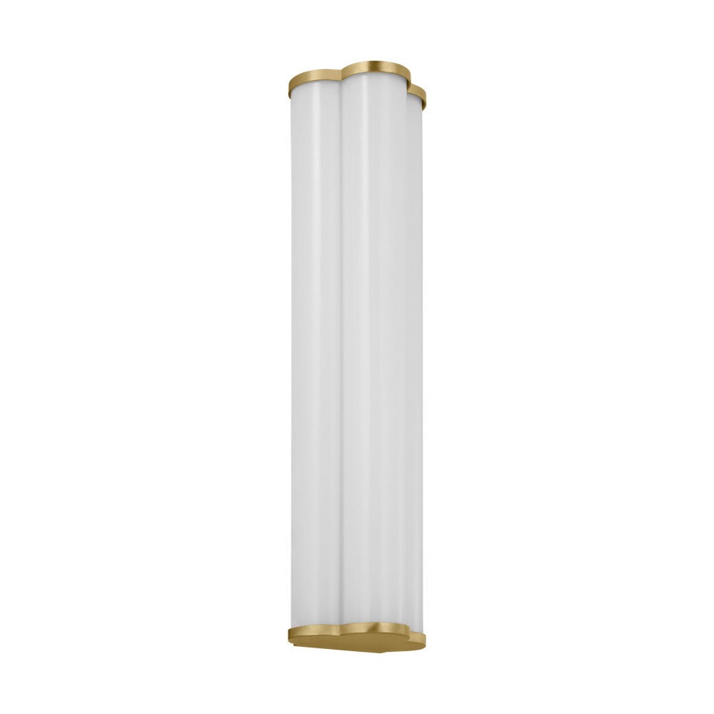 The Freya is a unique design by kate spade new york with three milk glass cylinders resting on a Burnished Brass back plate that can be placed vertically or horizontally. These wall lights are also technologically savvy, fitted with an integrated LED. With their sleek and chic design, the Freya vanity fixtures effortlessly complement any decor style, adding a dash of glamour to your dressing room, bathroom, or bedroom.