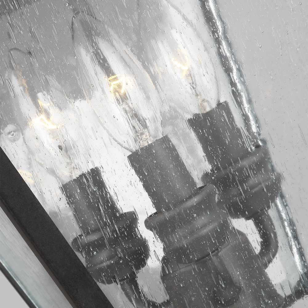 The Sean Lavin Galena three light outdoor wall fixture in sable creates a warm and inviting welcome presentation for your home's exterior. Galena is a Europe-inspired classic lantern. Simple and refined, Galena features a gently curved hook detail atop a vented, square-off roofline, and candle tubes floating within the tapered clear glass shades. Galena is a warm, welcoming silhouette offered in our NEW Sable finish.