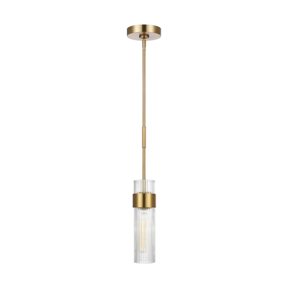 In the Geneva one light indoor pendant, a fluted shade forms an elegant, dynamic silhouette that's balanced by a strong frame of Burnished Brass or Polished Nickel.