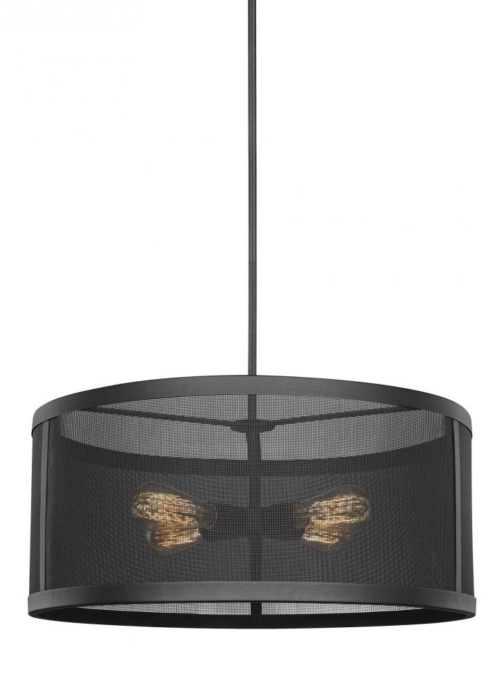 The Gereon four light indoor pendant in black supplies ample lighting for your daily needs, while adding a layer of today's style to your home's décor. A distinctive mesh lampshade in the Gereon Collection harkens back to the industrial days of machine innovation, adding a rugged look of workmanship that transforms an interior's identity. At once stylistic and utilitarian, Gereon is available in a finely textured Black finish with medium base sockets. The muted glow of the bulbs beneath the mesh framing adds a rugged personality. The versatile Gereon fixtures are damp rated for covered outdoor installations as well. Available as a 1-light mini-pendant, 3-light and 4-light pendants, 2-light semi-flush ceiling mount, and 1-light wall sconce to adapt interior settings in a variety of ways.