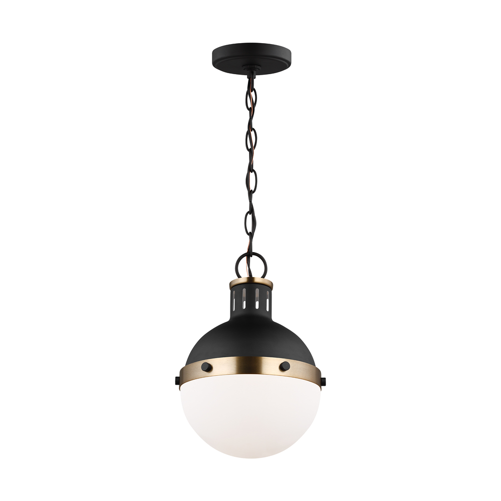 The Hanks medium modern pendant is offered in the Midnight Black/Satin Bronze, Antique Brushed Nickel, Satin Bronze, or Brushed Nickel finish. This globe style pendant is crafted with an antique finish and white glass shade, offering an approachable style with direct lighting. The multiple use of color and finishes exude mid-century modern style to help entice any updated space.