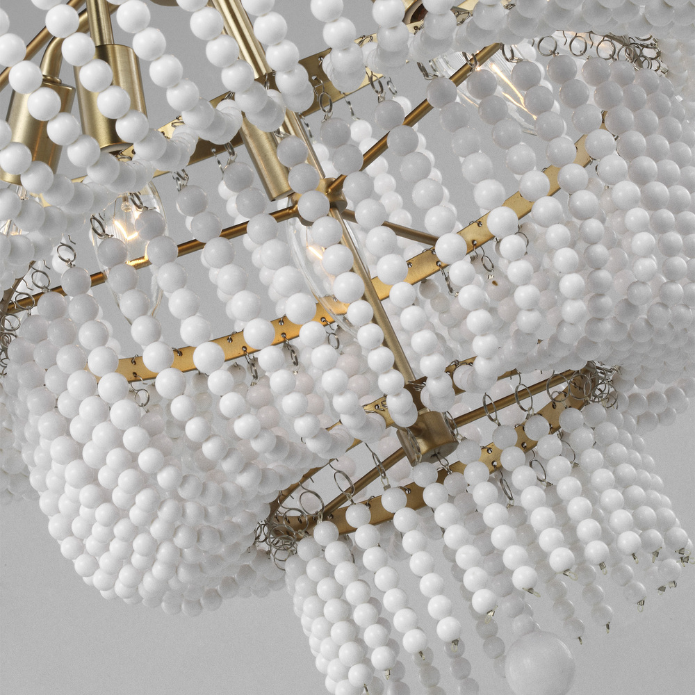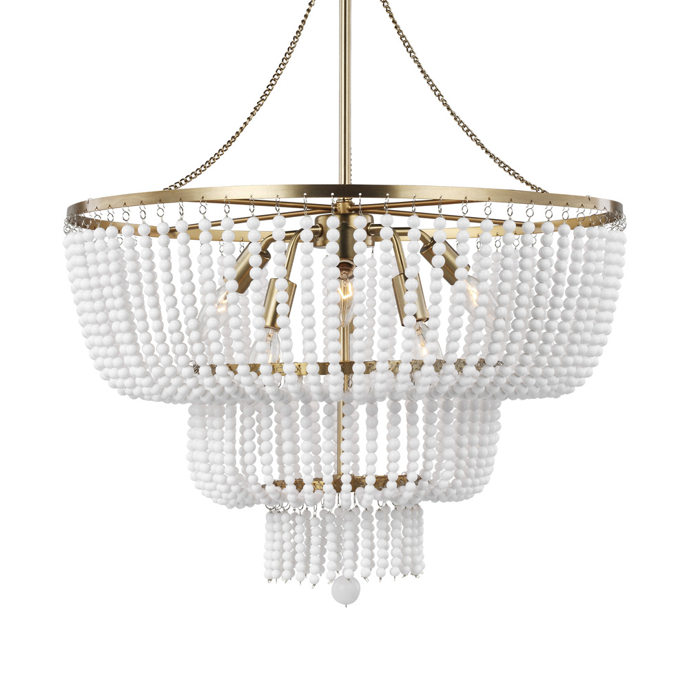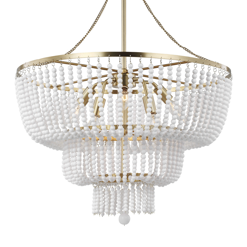 The Jackie small traditional chandelier by Visual Comfort Studio is offered in the Satin Brass, or Brushed Nickel finish and is a charming delight in any room. The vintage elements meet modern colors and finishes for a timeless piece. Dress up your space in decadence with this shimmering fixture, draped in a waterfall of beading for a comfort that screams ease and refinement. The Jackie six light single tier chandelier in satin brass adds an elegant texture to any room.