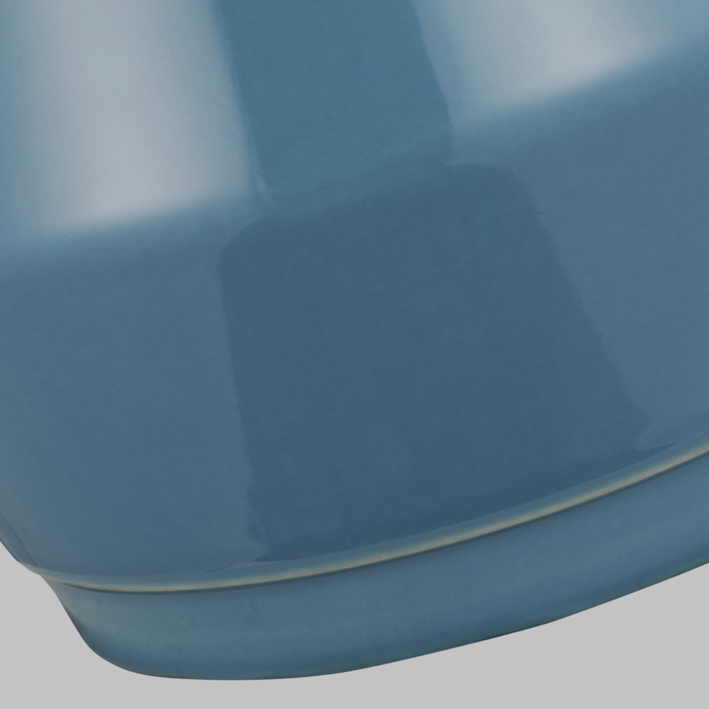 The Jens table lamp from Thomas O'Brien is simple yet bold. Jens is crafted of ceramic with a modern hourglass silhouette and accented with Burnished Brass details. The Lucent Aqua or Soft Ivory finish flows from the top to the bottom of the base. A white linen shade completes the design.