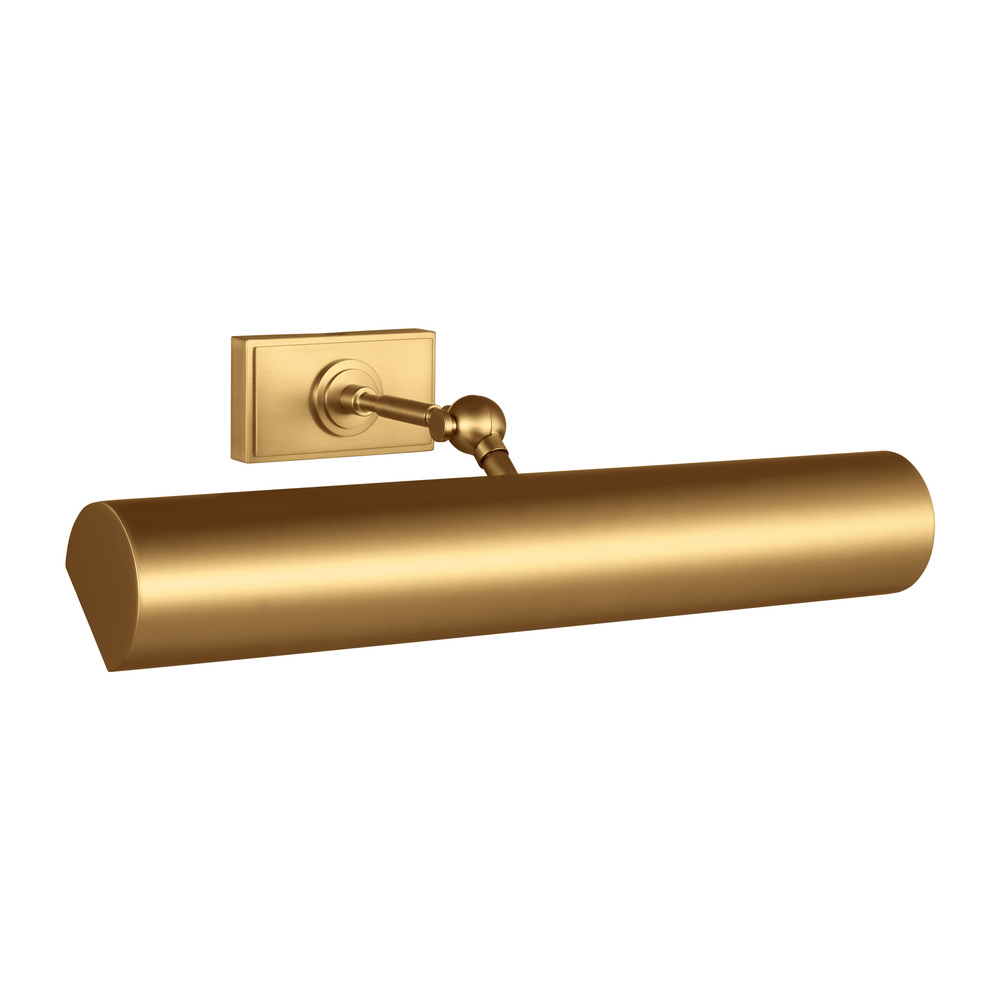 The Kenyon 18" Picture Light by Chapman & Myers were designed to be highly versatile in their application, at home in any interior. They have classic half round pharmacy shades which are mounted to a cylindrical metal stem with a differentiated stepped detailing. The picture lights have an architecturally inspired medallions where the arms mount to the rectangular backplate. Kenyon has a smooth clean metal shade that will bring the perfect light to your works of art. Available finishes include Aged Iron and Burnished Brass.