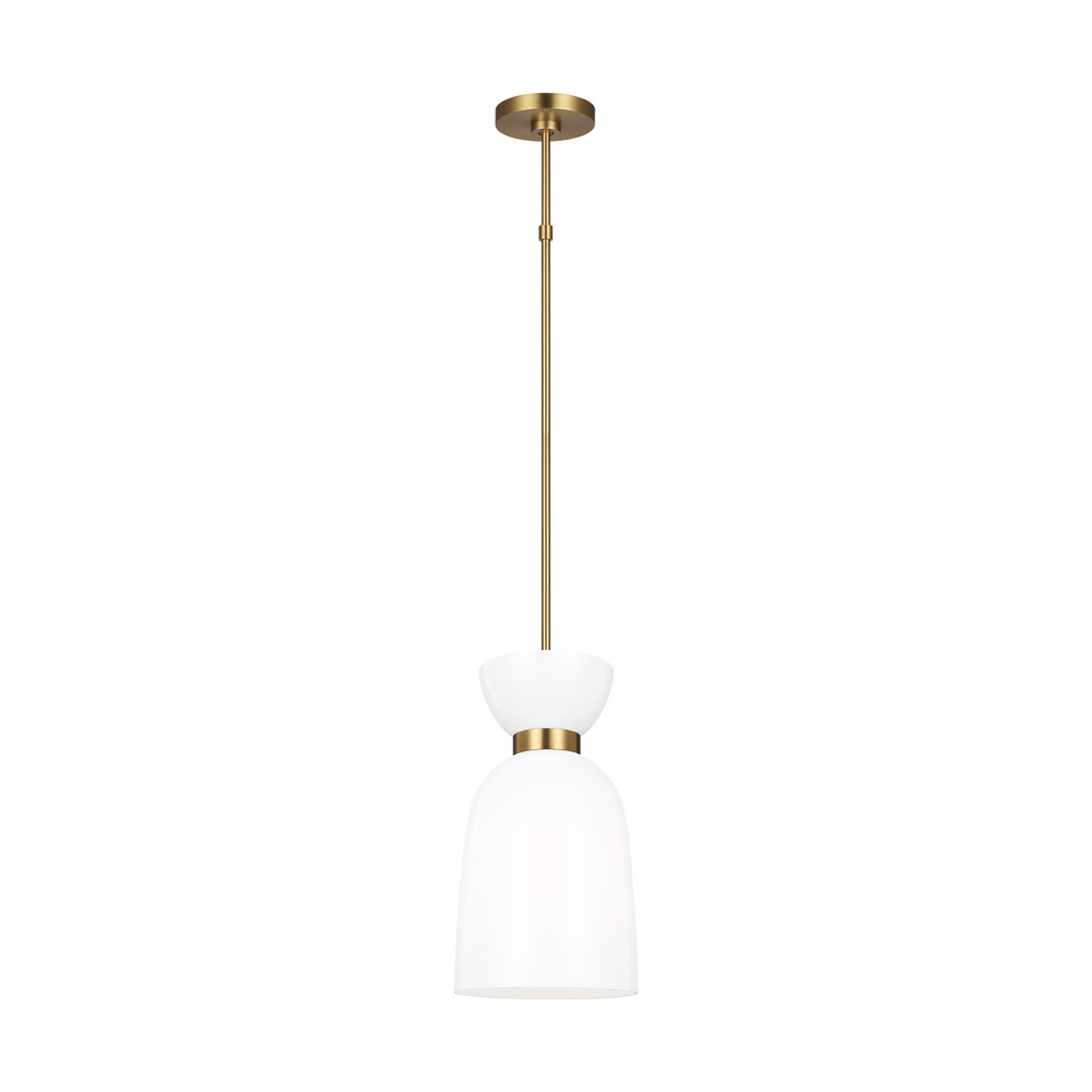 Londyn is inspired by geometric playful midcentury fixtures in metal and glass with exciting profiles and scale play. Two glass spheres with a simple metal cuff and a single bulb—an elegant pendant with graphic interest. This pendant would be great as a single or in multiples over a kitchen island.