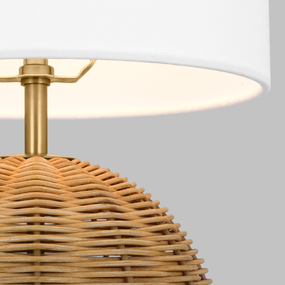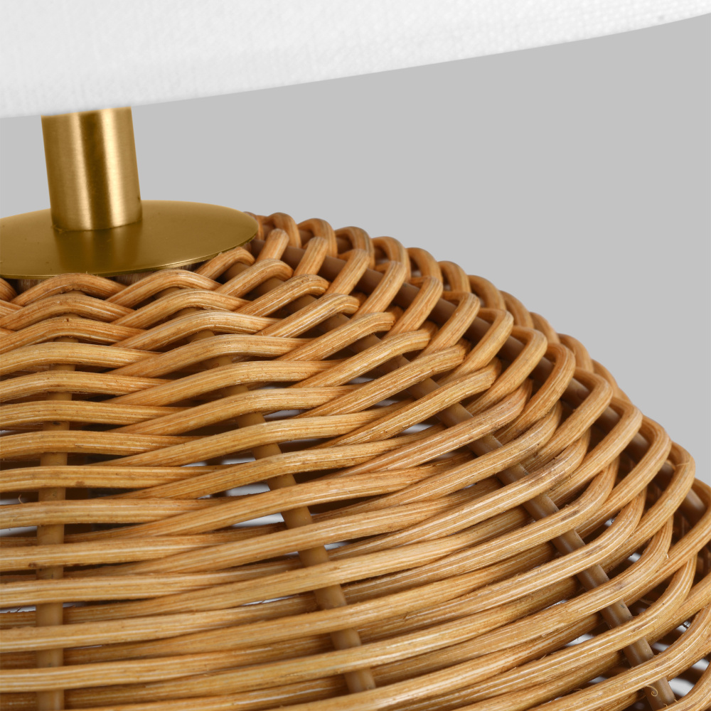 Mari is inspired by rattan handbags from kate spade new york as well as classic 50s and 60s modernist profiles. Hand-woven rattan gives this series an organic, tropical vibe and ensures a warm glow. The golden canopy adds a dash of glamour. Filtering the light from within, each piece creates a play of light and shadow in a room, adding an inviting ambiance. Mari can work with various boho decor and in homes with coastal or farmhouse styling.