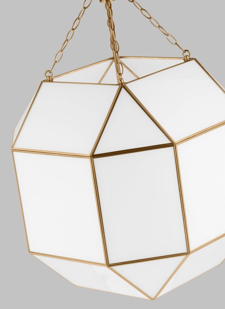 Featuring a lantern-like design with curved arms connecting to a cube-shaped frame, the Morrison pendant series by makes a perfect statement piece over a kitchen counter or dining table. This versatile design comes in Small, Medium or Large Lantern sizes, plus Small and Large Flush Mount. It is available in Clear or White Glass with Antique Nickel, Brushed Nickel or Satin Brass finish. Morrison is supplied with wire pre-laced through chain and sloped ceiling mounting hardware to customize your installation.