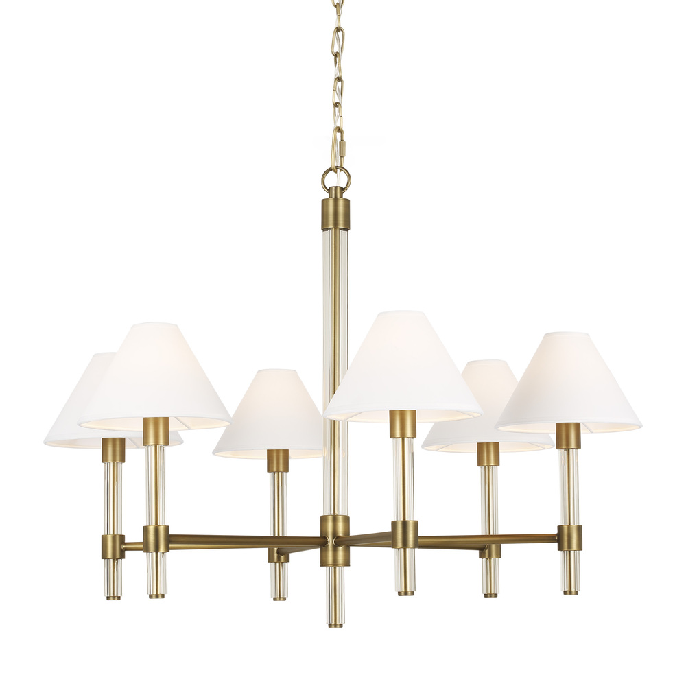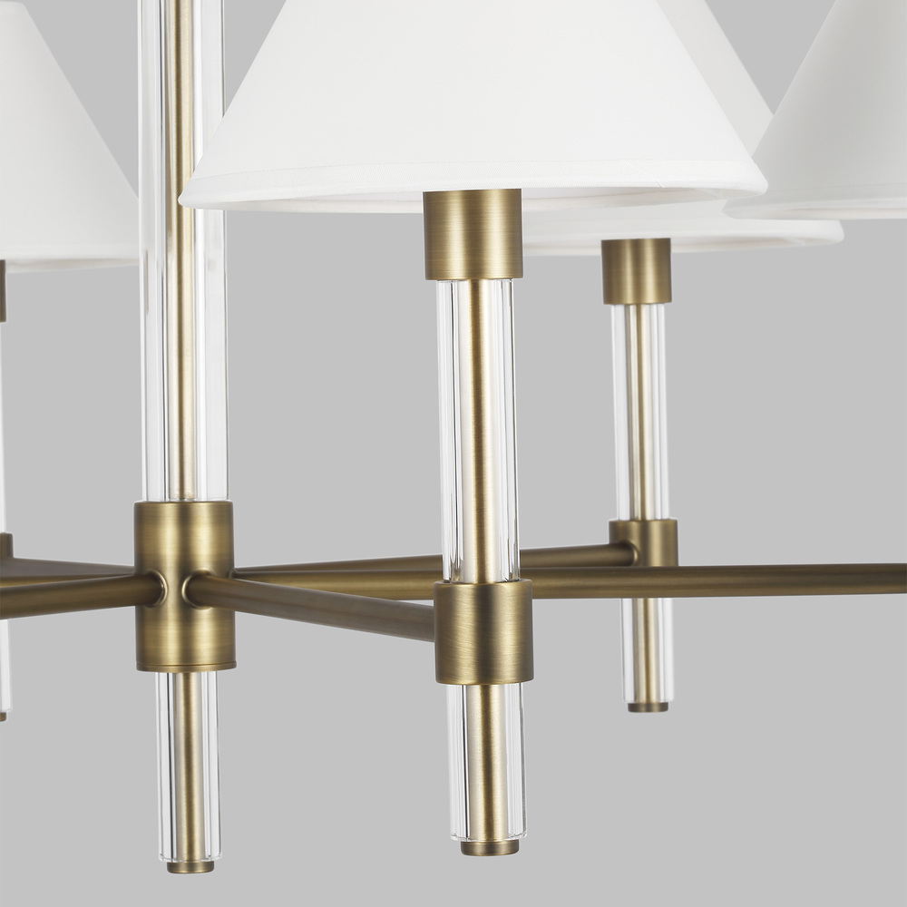 The Robert six light single tier chandelier has strong clean lines of Lucite stems that elevate and support the paper empire shades in this shapely series.