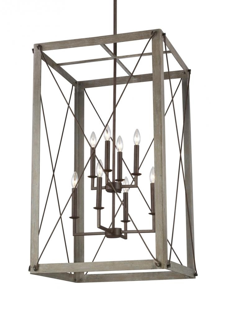The Thornwood eight light indoor pendant in washed pine exudes authenticity, combining the tactile with the time-worn. Perfect proportions and honest functionality complete the package. The Thornwood lighting collection offers three-light, four-light and eight-like chandeliers, an eight-light linear, four-light foyer chandelier, and a two-light wall sconce. The two-light wall sconce is Damp Rated. Available in Washed Pine and a Weathered Iron Finish.
