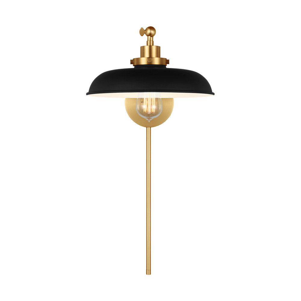 The simple industrial-inspired Wellfleet wide single arm sconce features a metal wide shade that will tie into a number of design aesthetics