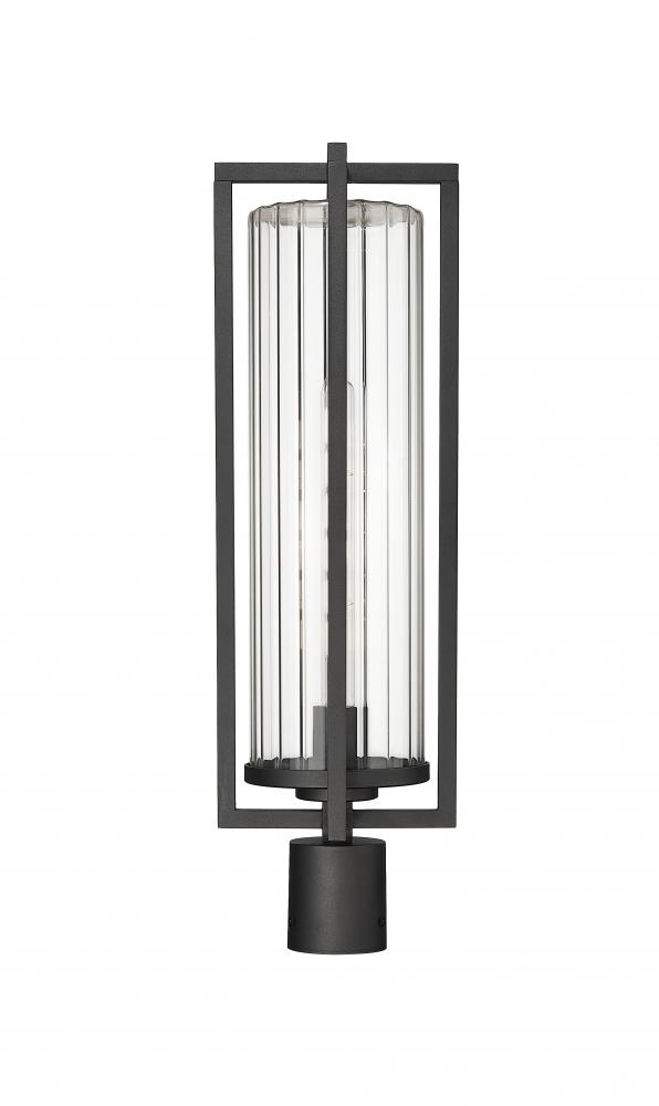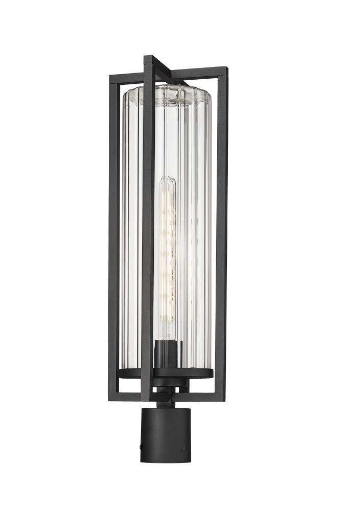 Creating a crisp geometric aesthetic with timeless style, this one-light outdoor post mount fixture tops a post of your choice to complete a stylish look with sophistication. Embrace the smooth look of Coastal black painted aluminum construction, and the textural elegance of clear ribbed glass. Spruce up a garden or walkway with a contemporary outdoor post mount light that is also suitable for more transitional motifs.