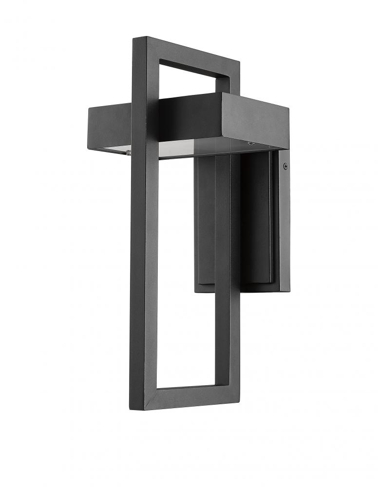 Preserve the contemporary aesthetic of a carefully planned exterior space with a modern light that combines gorgeous black aluminum and frosted glass. Sleek open triangles converge in an asymmetrical form to deliver an intriguing ambiance, and integrated LED technology adds the bonus of energy savings.