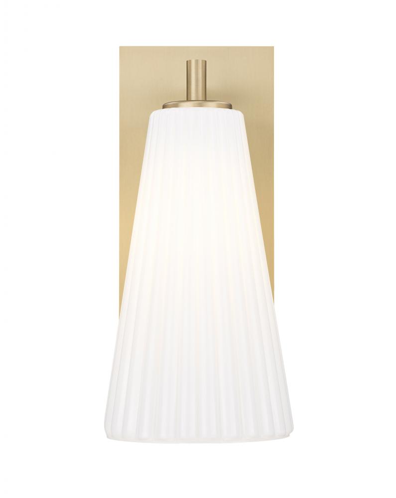 Illuminate a bedroom or living area with the sophisticated presence of a modern one-light wall sconce from the Farrell collection. Its elongated profile extends to both its modern gold finish wall plate and fluted glass shade, creating a striking blend of refinement and character.