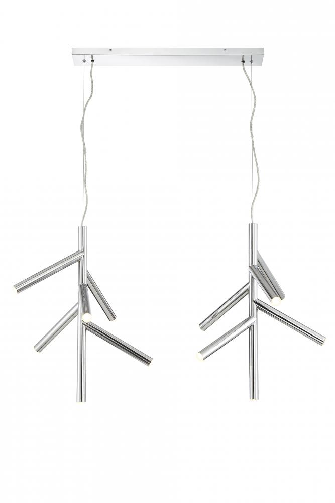 Inspired by modern sculptural design, these two chrome hanging pendants impress with sleek lines. Configured in an interesting pattern, the tubed shapes are complete with dimmable LED lights.