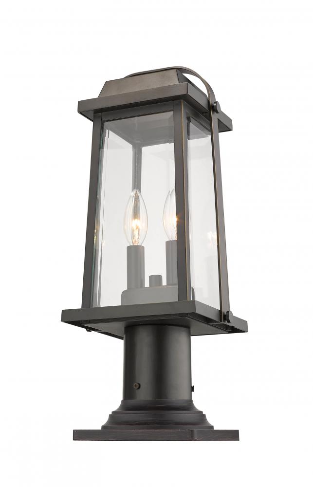 Bring a classic look with artistic and geometric elegance to any exterior space. Perfect for a garden or walkway, this rubbed bronze finish outdoor post lantern brings a sleek tapered look with a romantic candelabra-style bulb base.