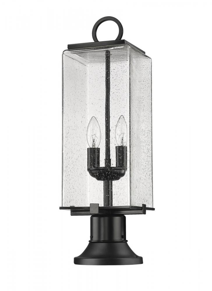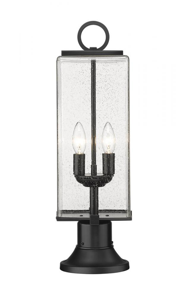 Stylishly provide coastal or contemporary allure to your patio or deck with this two-light outdoor pier mounted fixture. Crafted of steel, this fixture features a black finish and a seedy glass shade for added style.